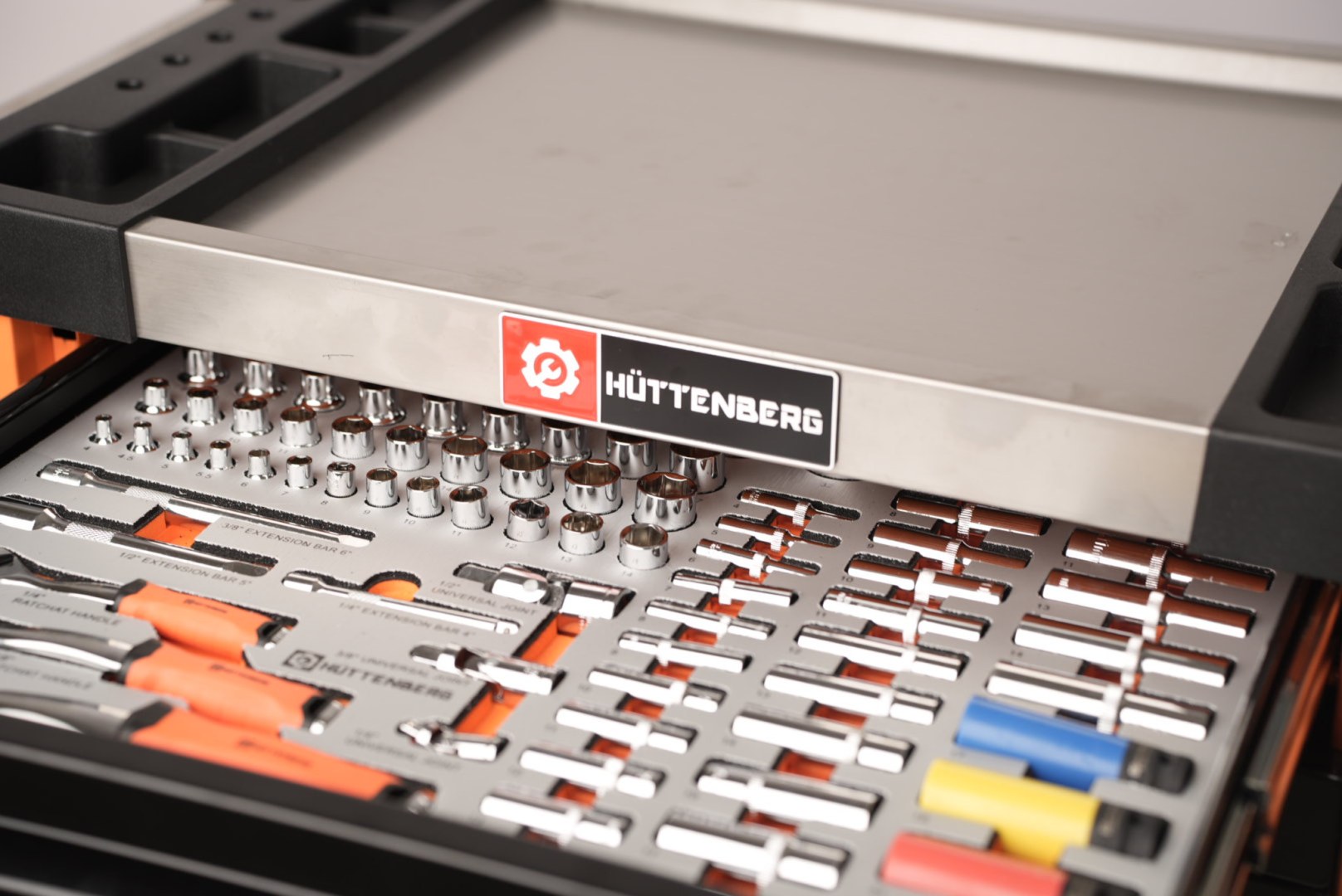 Le chariot à outils Huttenberg 7 Pro avec plan de travail en bois est votre partenaire idéal pour tous les travaux, que vous soyez un professionnel ou que vous souhaitiez simplement bricoler dans votre propre espace de travail. Ce chariot à outils améliore l'efficacité de votre travail et offre une solution rationalisée pour tous vos besoins. Grâce à l'espace de rangement spacieux dans les tiroirs, vous avez tous vos outils à main, vos vis et vos embouts à portée de main. Cela vous fait gagner un temps précieux et vous n'avez pas à faire des allers-retours pour obtenir les bons outils. Tout ce dont vous avez besoin est clairement organisé et immédiatement disponible.