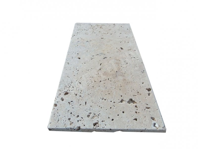 Travertin Beige Couvertine 30,5x61 cm Épaisseur : 2 cm Finition : Antique & Vieilli Qualité : Rustique 2 Bord Arrondi