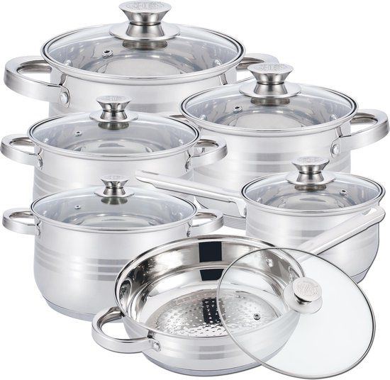 Ces magnifiques poêles constituent une cuisine élégante. Les deux ensembles comportent des casseroles en acier inoxydable avec de subtiles rayures sur toute la largeur. Les couvercles en verre avec poignées en acier inoxydable complètent ce look élégant. En plus de leur belle apparence, les casseroles sont également très pratiques. Grâce à l'acier inoxydable, ils dureront des années et, comme ils sont résistants aux rayures, ils conserveront longtemps leur belle apparence. De plus, vous avez fini de cuisiner, mais vous n'avez pas envie de faire la vaisselle ? Ensuite, vous pouvez simplement mettre les casseroles au lave-vaisselle.