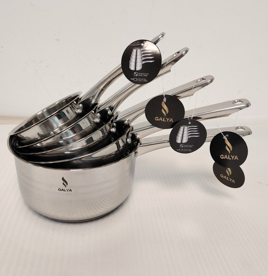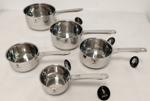 Cette série de 5 casseroles en acier inoxydable de qualité professionnelle aide à préserver l'authenticité du goût des aliments, sans ajout de matières grasses. Equipée de poignées en acier inoxydable résistantes à la chaleur. Cuisine rapide et sainte. Compatible avec le lave-vaisselle.