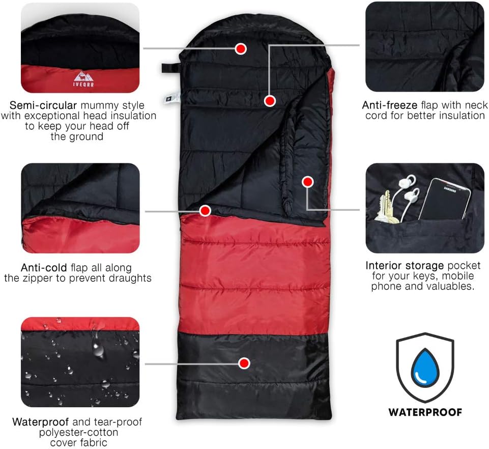 IVEQRR Sac de Couchage Adulte et Enfant |3-4 Saison pour Camping et randonnée | Compact Grand Froid Ultra Leger et rectangulaire | Extrêm -10 Degrees Sleeping Bag | Imperméable et Anti-déchirure