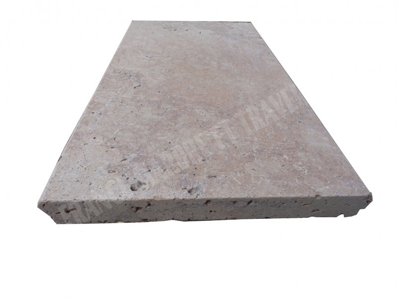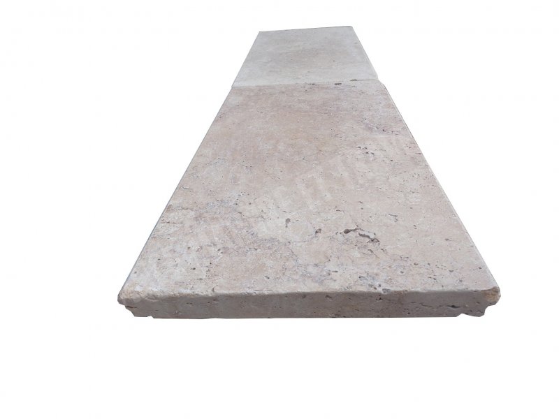 Travertin Beige Couvertine Goutte d'eau 30,5x61 cm Épaisseur : 3 cm Finition : Antique & Vieilli Qualité : 1'er Choix 2 Bord Ogee