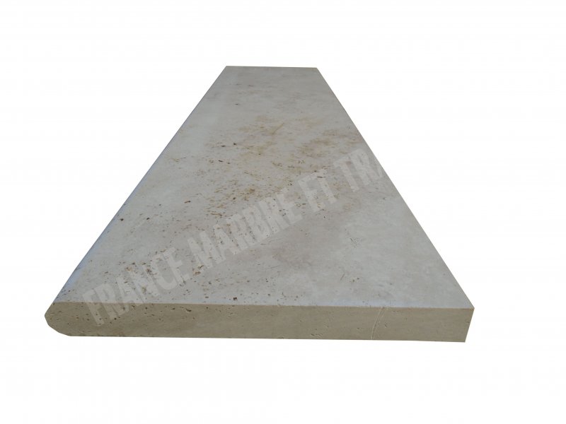 Travertin Beige Marche Escalier 122x30,5 cm Épaisseur : 3 cm Qualité : 1'er Choix Finition : Antique & Vieilli Bord Arrondi