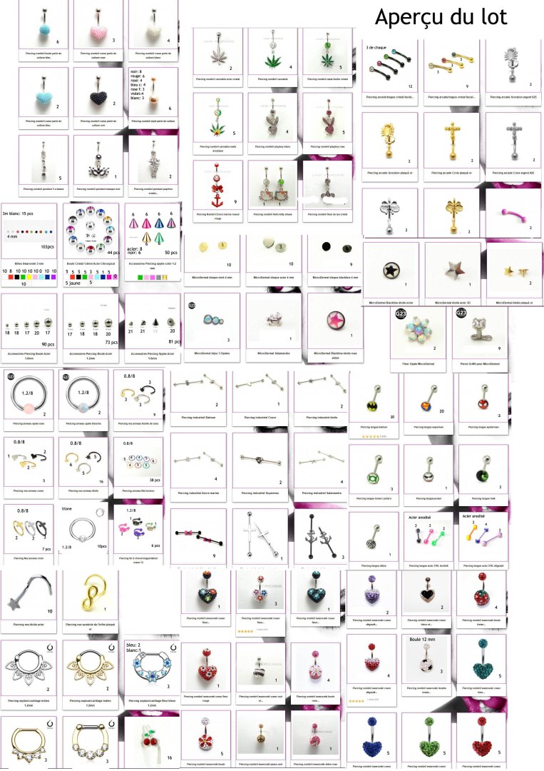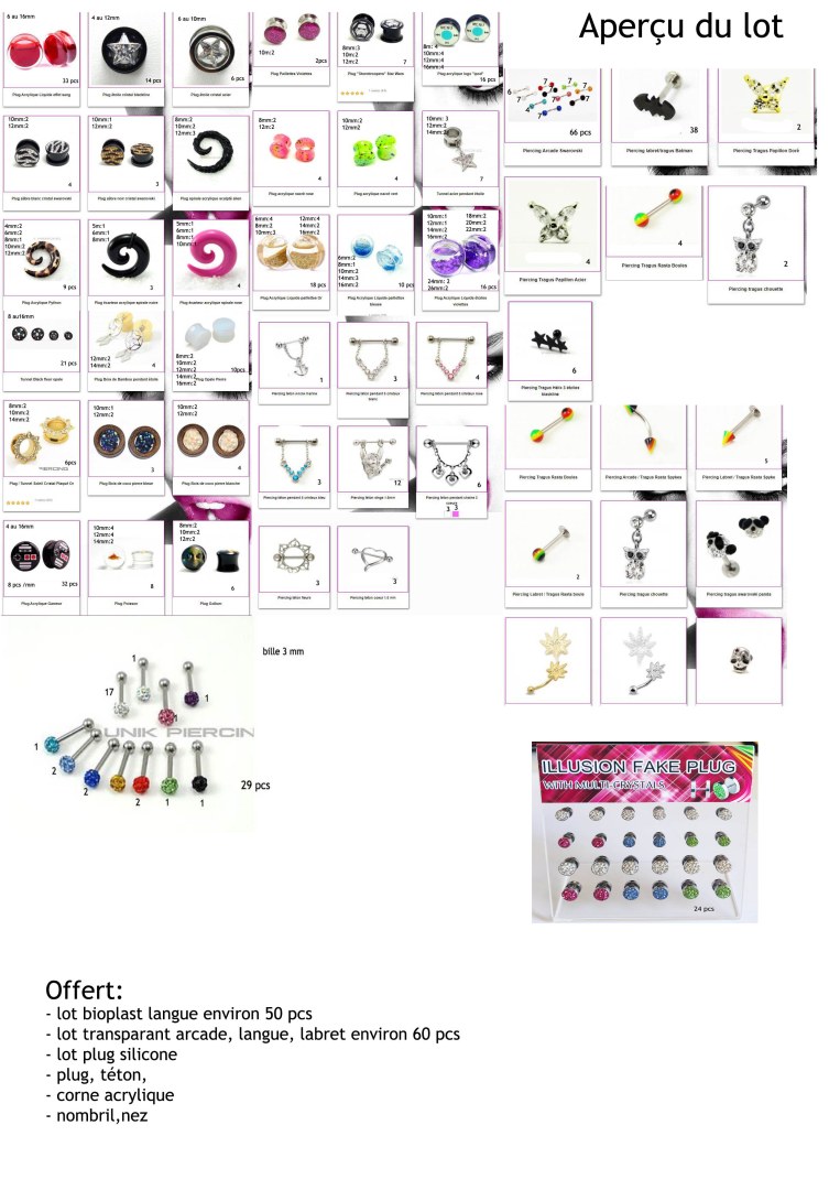 Cette page concerne les Fournisseurs et Grossistes de Lot Bijoux piercings neufs Rechercher dans la catégorie : Bijoux / Accessoires Rechercher dans la catégorie : neufs, piercings, bijoux |