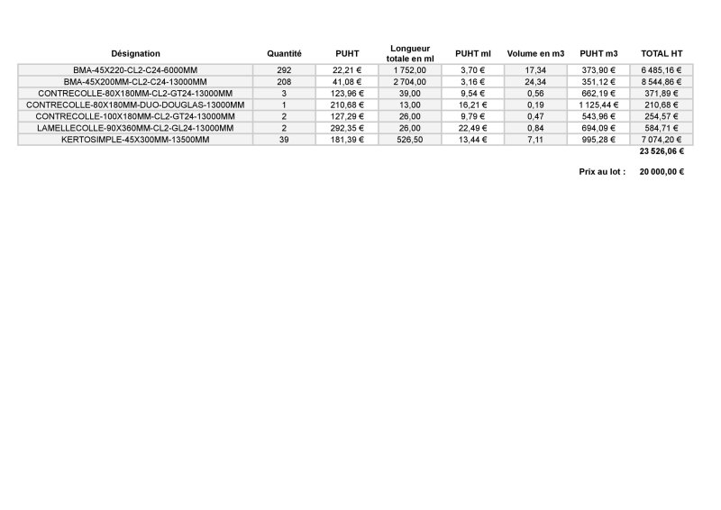 TOTAL : 23526 € HT remisé à 20000 € HT