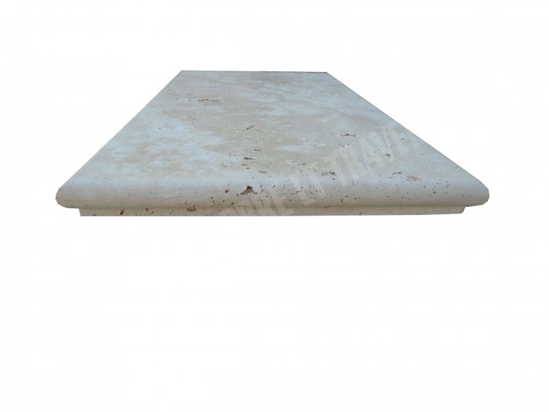 Travertin Beige Marche Escalier d'angle Sortant Gauche Ogee 30x61 cm Épaisseur : 3 cm Qualité : 1'er Choix Finition : Antique & Vieilli