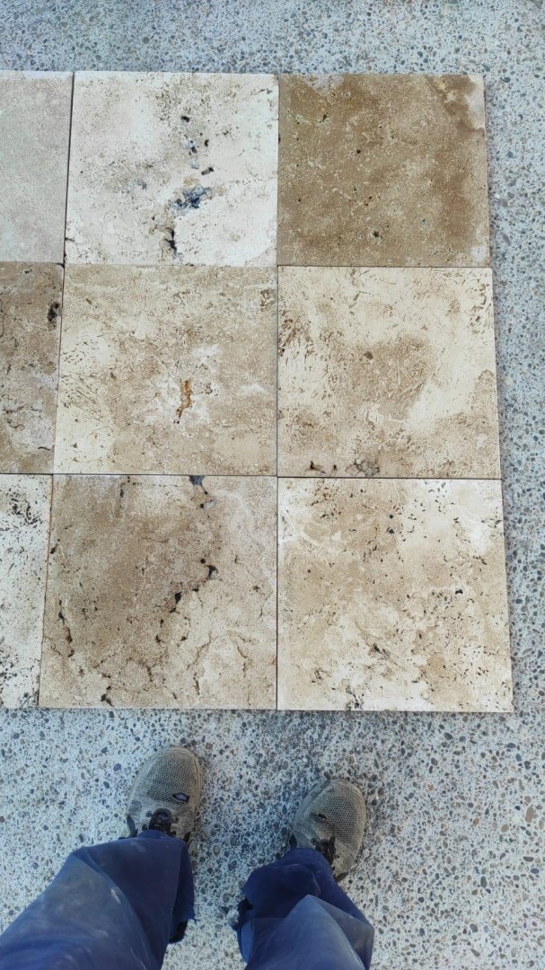 Travertin Beige Nuance 40x40 cm Épaisseur : 1,2 cm Finition : Antique & Vieilli Qualité : Commercial PRIX : 11 € HT - m² |