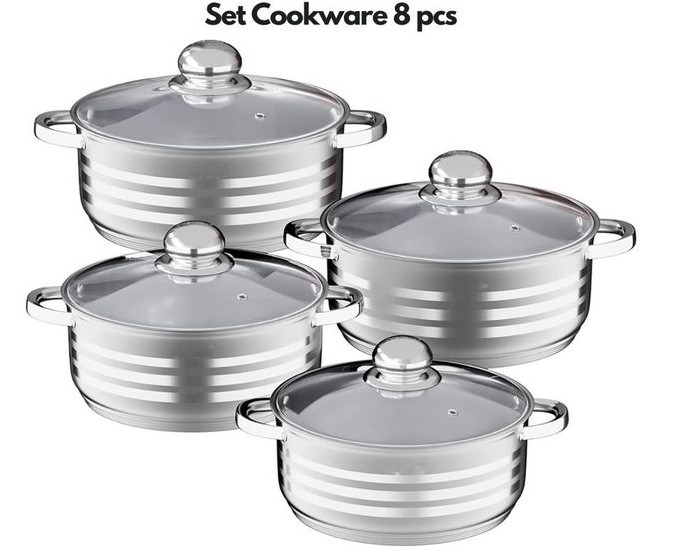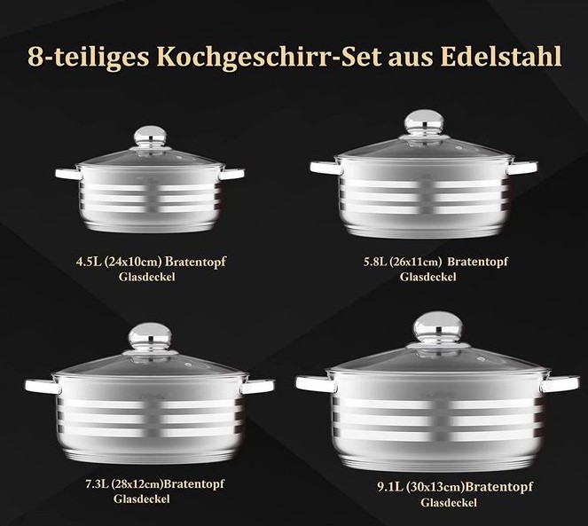 Batterie De Cuisine 8 Pièces En Acier Inoxydable 18/10 Couvercles En Verre inclus Induc...