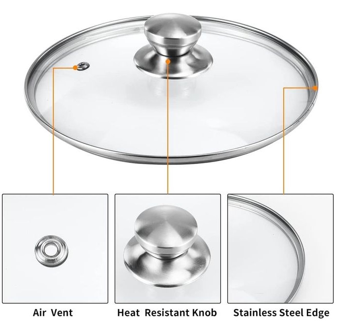 Cuisson pratique avec couvercles en verre : Surveillez facilement le processus de cuisson sans perte de chaleur grâce aux couvercles en verre transparent.