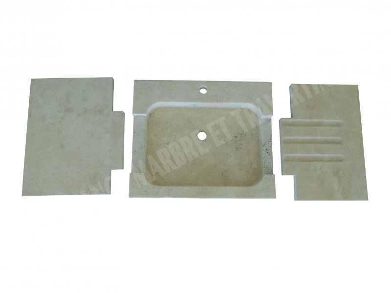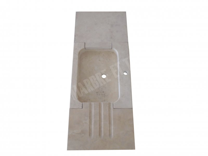 Travertin Classique Beige Evier Avec 2 Tablettes Dimension de l'Evier : 60x50 10 cm Dimension de Tablette : 50x40 3 cm Qualité : 1'er Choix Finition : Adouci & Mat |