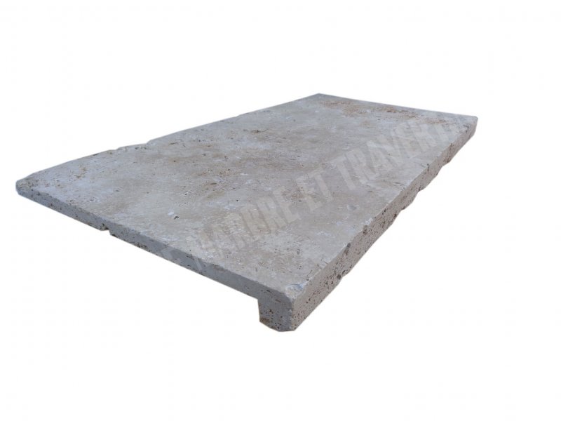 Travertin Beige Nez de Marche Droit 30,5x61 cm Épaisseur : 3 cm Qualité : Rustique Finition : Antique & Vieilli PRIX : 21 € HT – Pièce |