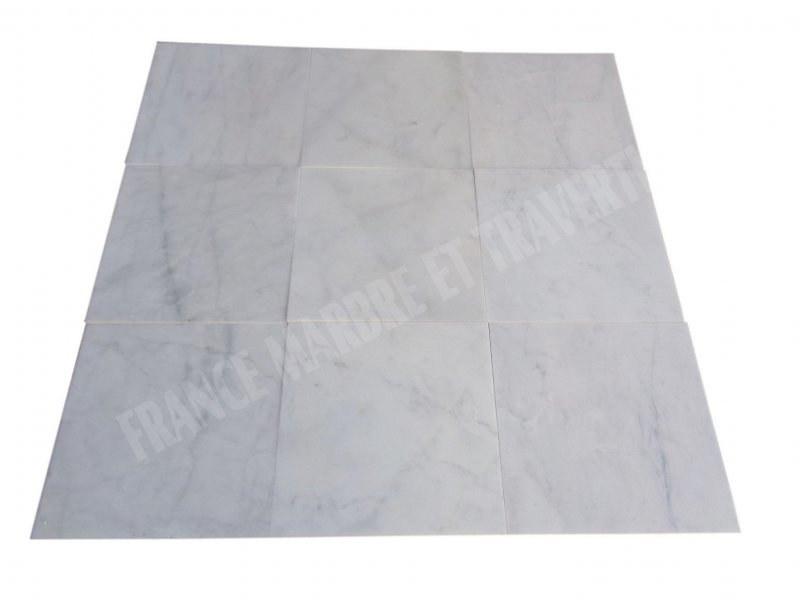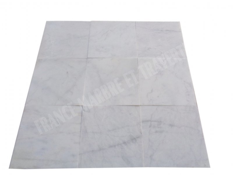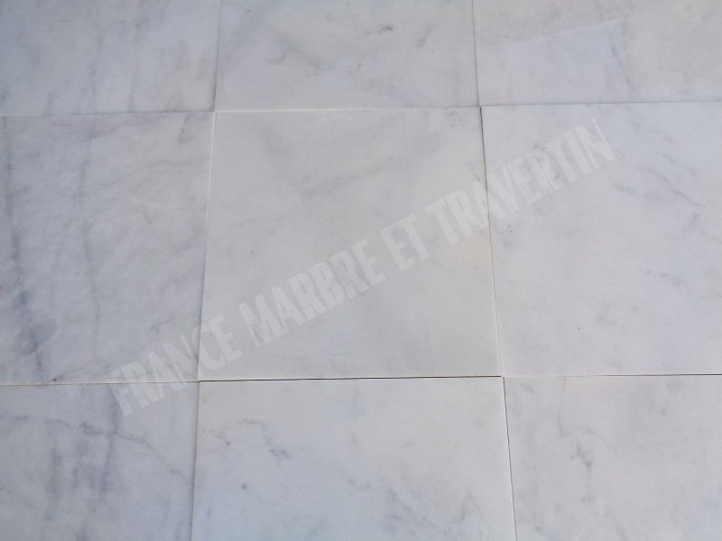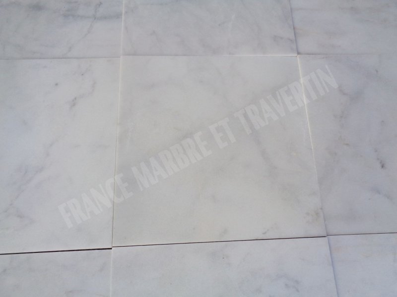 Marbre Blanc Carrare Turque 45x45 cm Épaisseur : 1 cm Finition : Poli & Brillant Qualité : 1'er Choix PRIX : 40 € HT – m² |