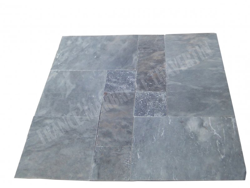 Pierre Bleue Turque Opus Romain Dimension : 20x20 - 20x40 - 40x40 - 40x60 cm Épaisseur: 1,2 cm Qualité : Rustique Finition : Antique & Vieilli