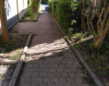 - 34 ml de bordures de jardin en béton brut avec chanfrein sur un angle