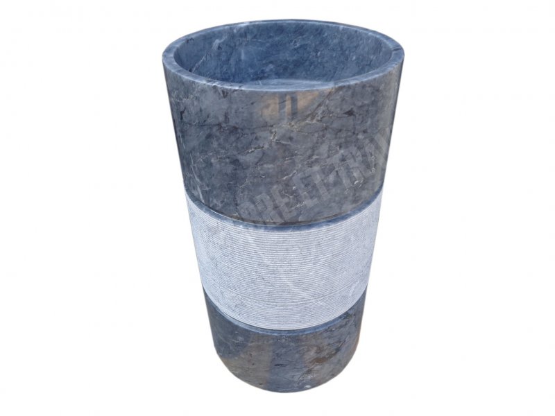 Pierre Bleue Turque Piédestal Vasque Modèle Baril