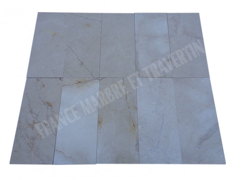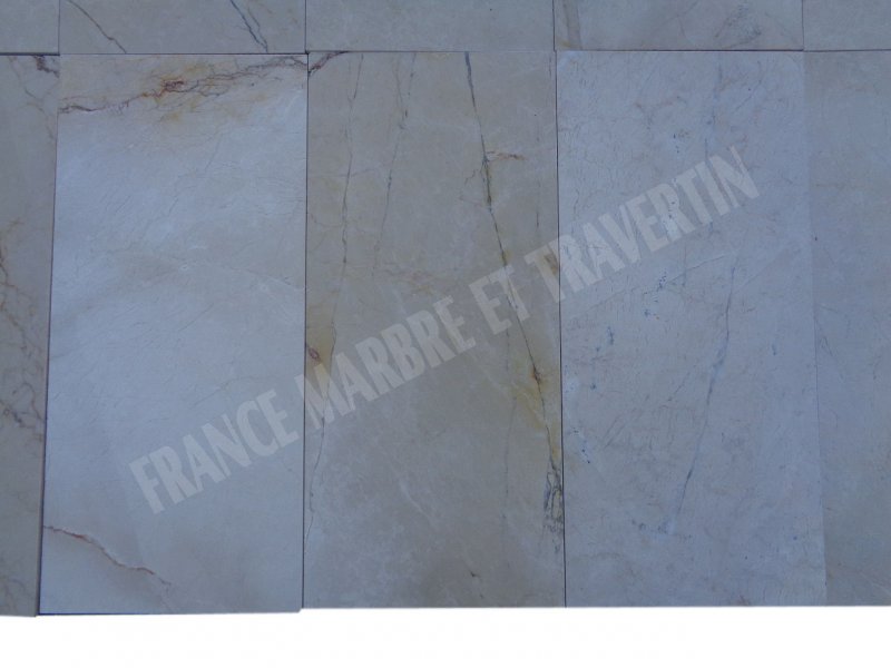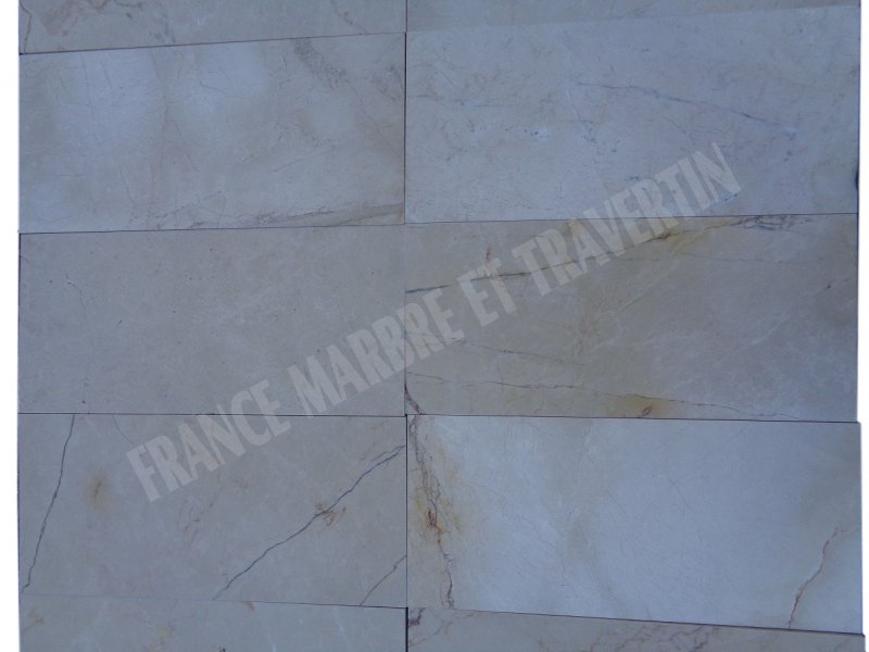 Marbre Beige Marfil Crema Perla 25x55 cm Épaisseur : 2 cm Finition : Poli & Brillant Qualité : Rustique PRIX : 25 € HT - m² |