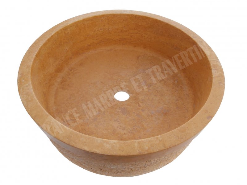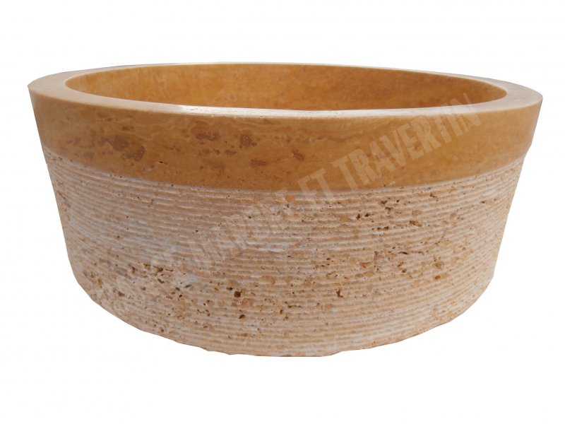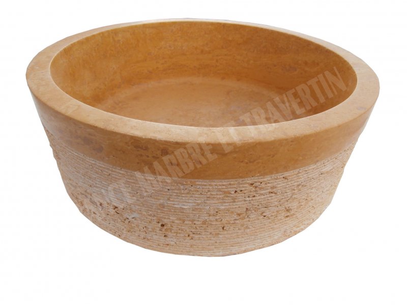 Travertin Jaune Vasque Modèle Cylindre Strié