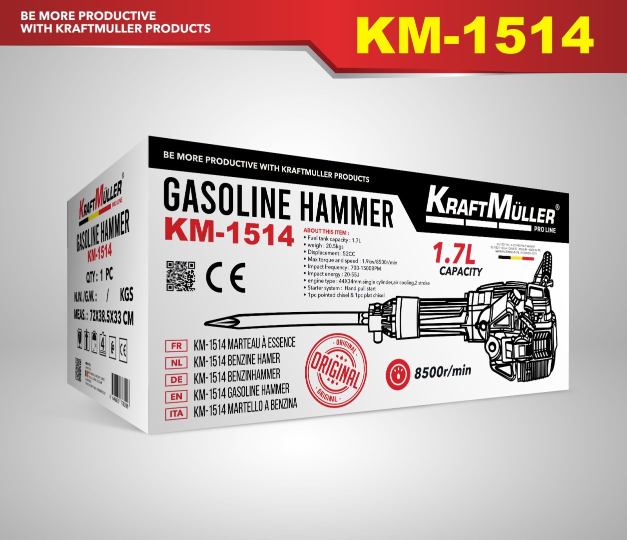Le marteau à essence KRAFTMULLER est un outil de démolition puissant adapté aux travaux de démolition verticaux, burinage au sol et bas de murs. Il permet de réaliser de grandes et petites ouvertures.