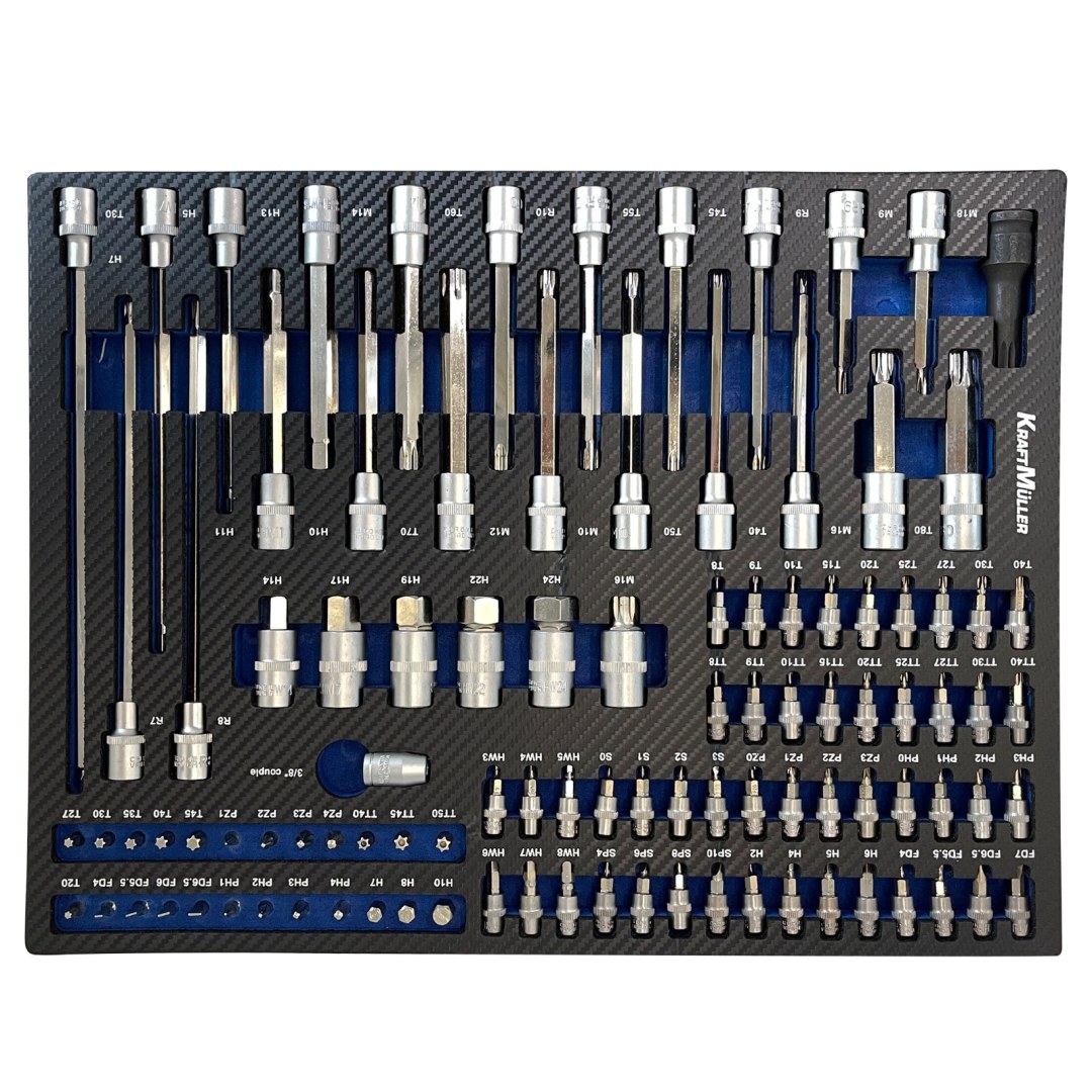 Tiroir 2 : assortiment d'embouts torx, btr, 6 pans, 12 pans pour les 3 tailles de cliquet