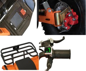 Il dispose de 4 roues montées sur chambre à air et jantes en acier, châssis simple tubulaire, moteur 100% électrique.
