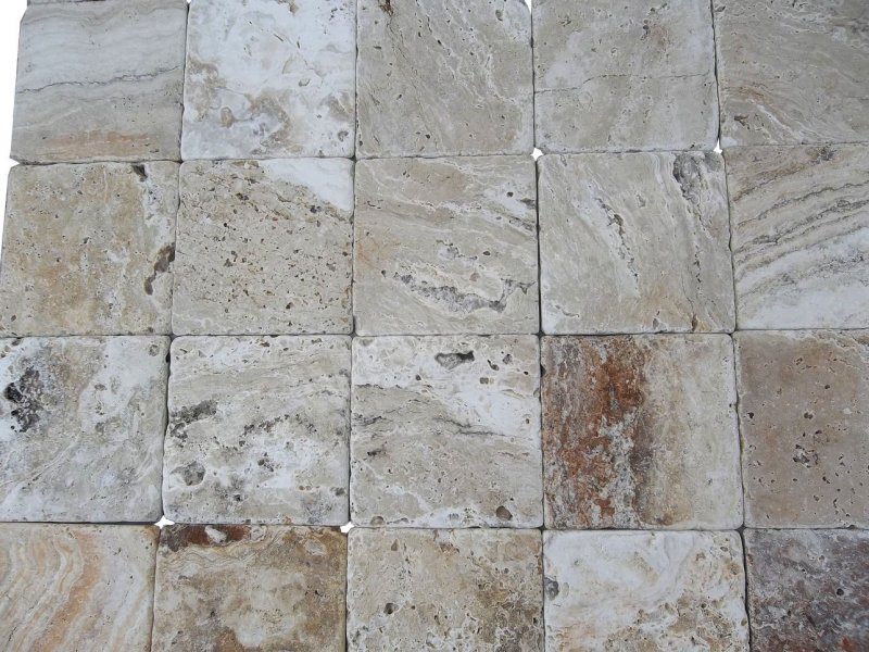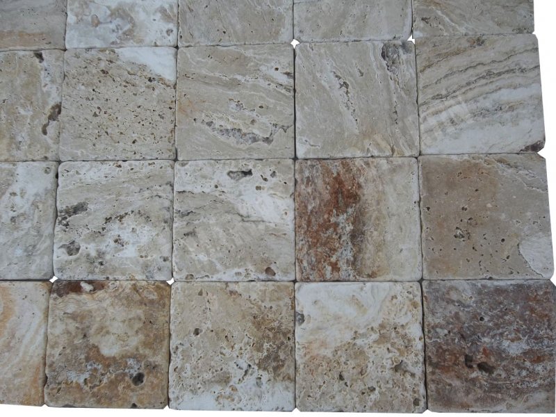 Travertin Leonardo 10x10 cm Épaisseur : 1 cm Qualité : Rustique Finition : Antique & Vieilli PRIX : 29 € HT – m² |
