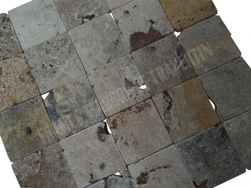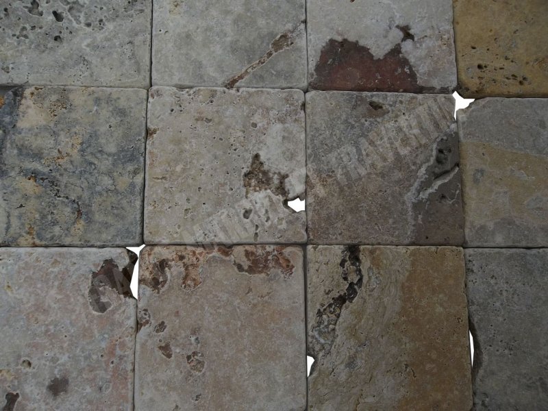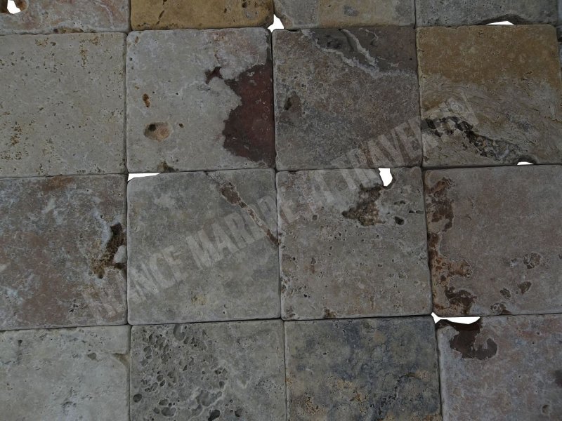 Travertin Mixte Carbien 10x10 cm Épaisseur : 1 cm Qualité : Commercial Finition : Antique & Vieilli PRIX : 29 € HT – m² |