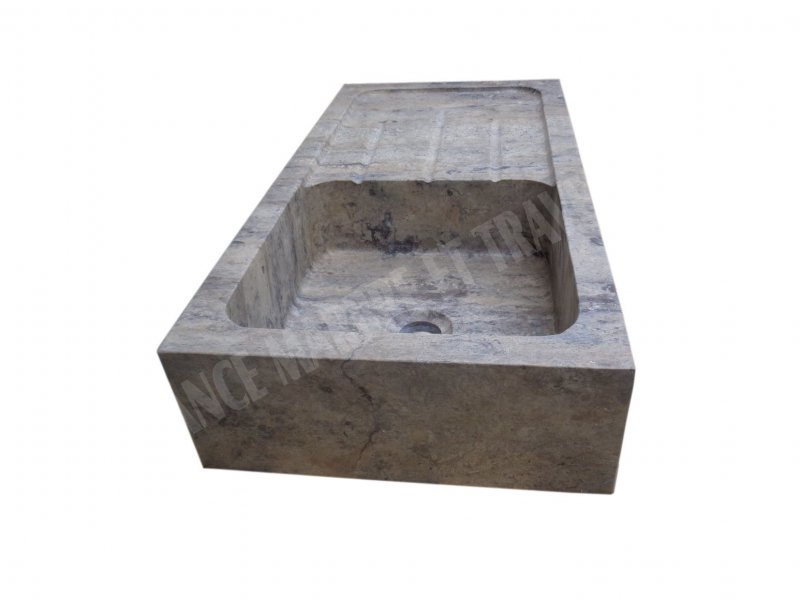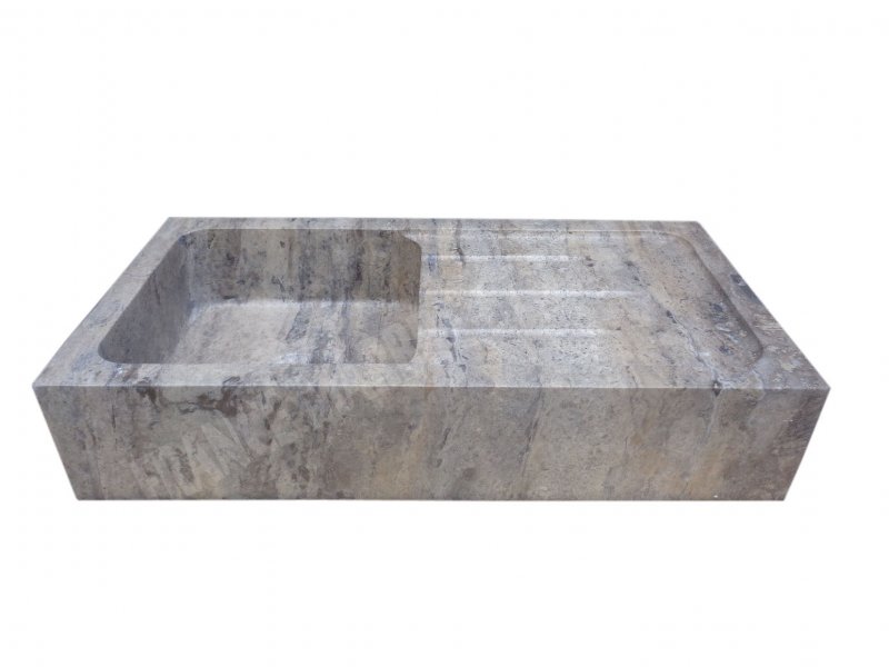 Travertin Silver Évier 1 Bac 90x46 cm Épaisseur : 18 cm Qualité : 1'er Choix Finition : Adouci & Mat PRIX : 550 € HT – Pièce |