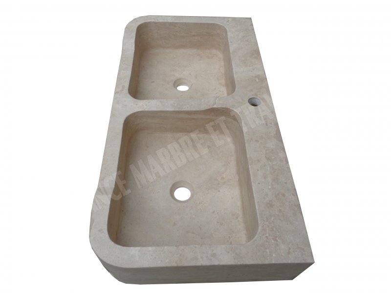 Travertin Classique Beige Évier 2 Bacs Place Robinet 90x46 cm Épaisseur : 15 cm Qualité : 1'er Choix Finition : Adouci & Mat PRIX : 550 € HT – Pièce |