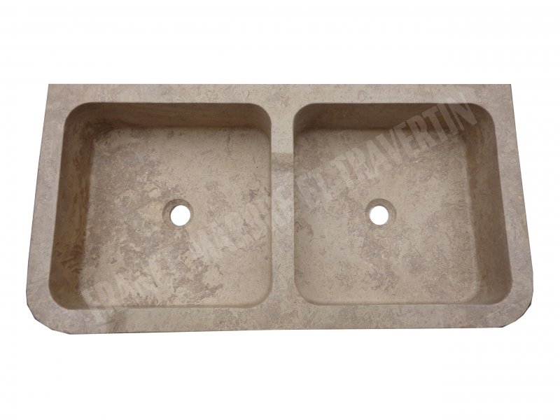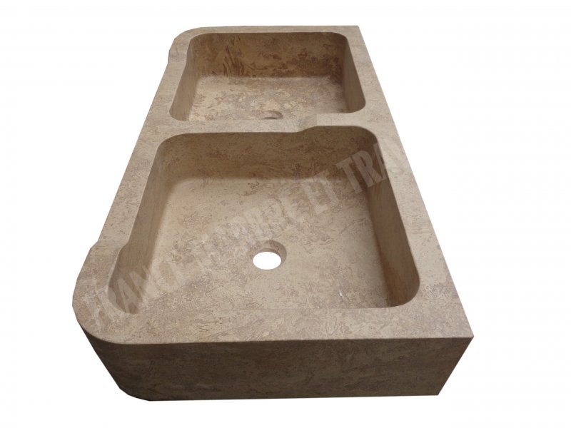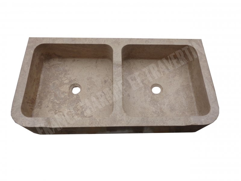 Travertin Noce Évier 2 Bacs 90x46 cm Épaisseur : 15 cm Qualité : 1'er Choix Finition : Adouci & Mat PRIX : 500 € HT – Pièce |