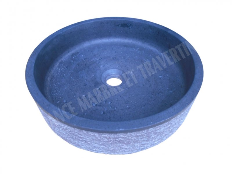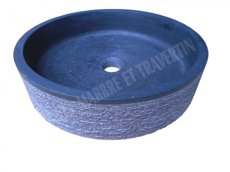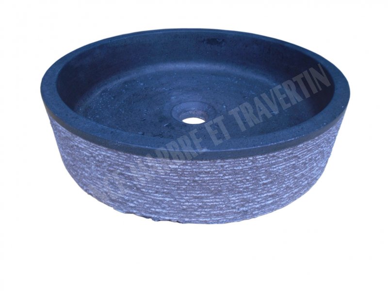Basalte Noir Vasque Modéle Cylindre Plat Strie