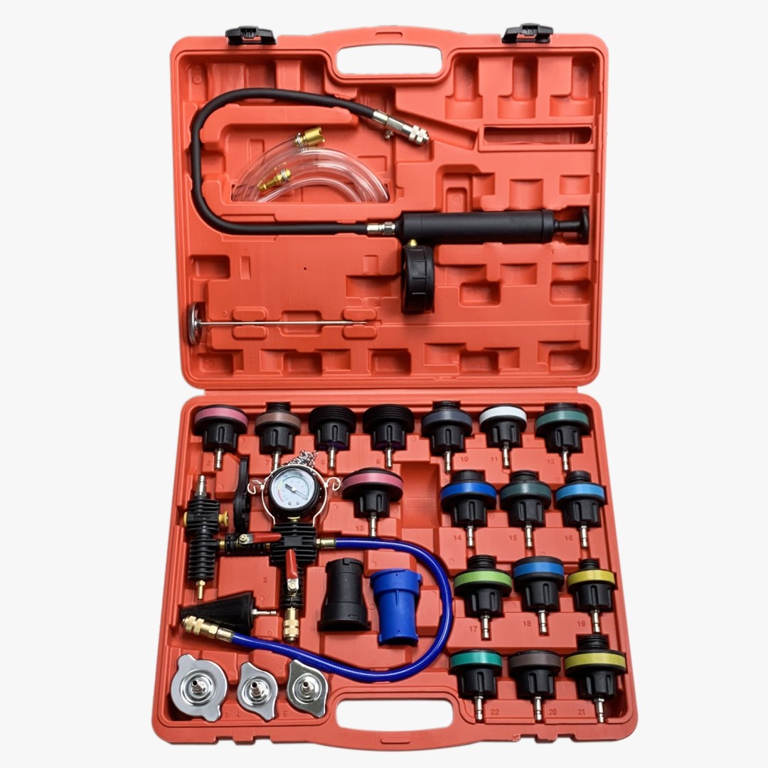 KIT DE TESTEUR DE PRESSION ET DE REMPLISSAGE DU SYSTÈME DE REFROIDISSEMENT 28 PC
