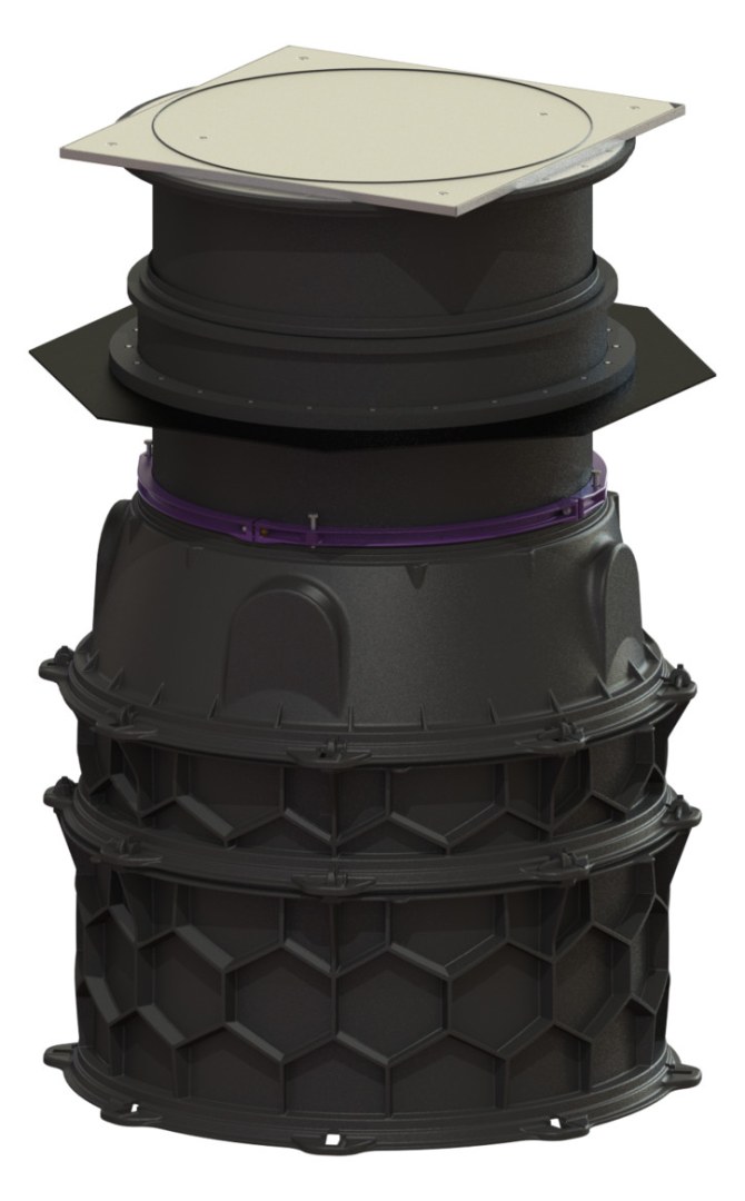 Mots-clés : Kessel, Schachtmodul, regard d'assainissement, regard de visite, système d'eaux usées, regard en polyéthylène, drainage, évacuation, fosse, réseau assainissement, regard préfabriqué.