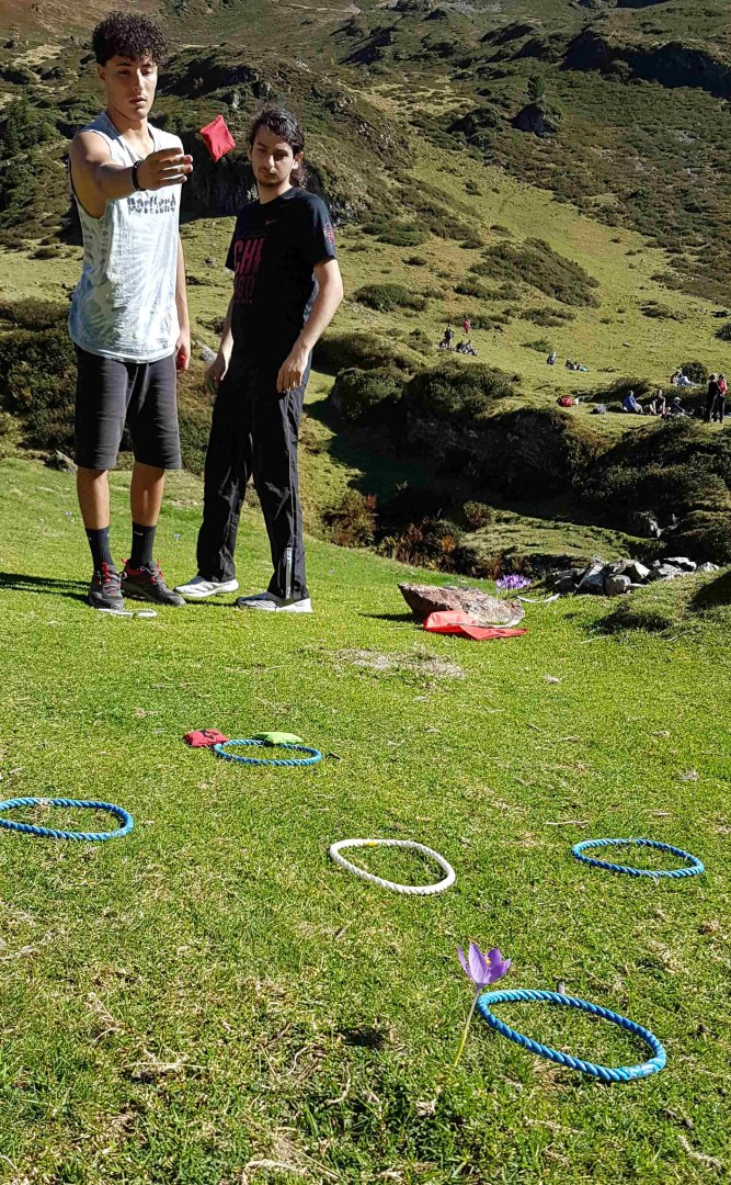 Contient : 1 sac de transport, 6 anneaux et 6 sacs à lancer, une règle du jeu.