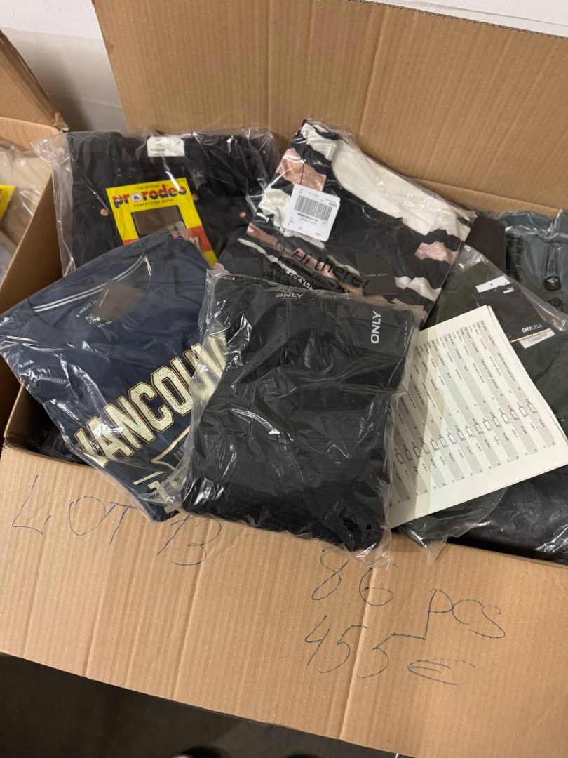 450 € par lot (86 pièces) – Vêtements de marque mixte femmes/hommes, catégories A/B/C...