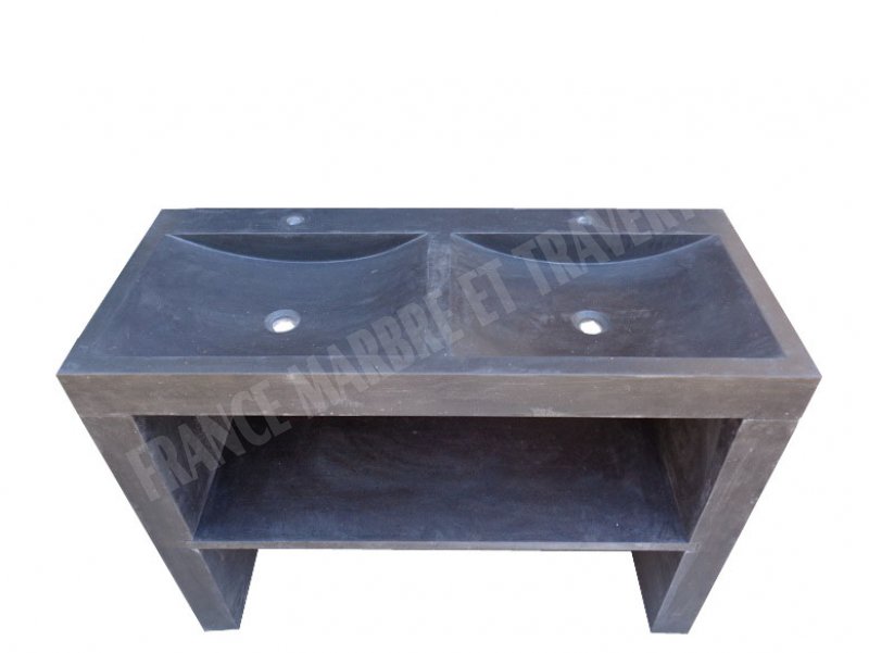 Basalte Noir Evier Meuble 2 Bac Avec Pieds