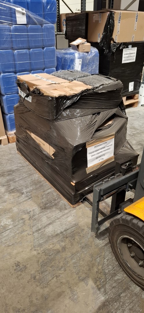 Bonjour, Nous proposons en vente un lot de flacons 60 ml en verre "MARRON" (avec bouchon pipette).