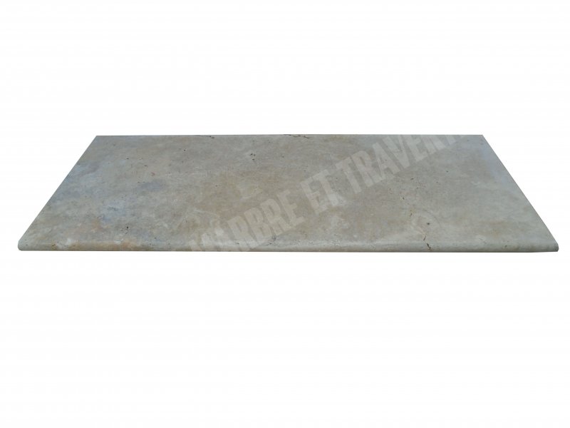 Travertin Beige Plan Vasque 120x60 cm Épaisseur : 3 cm Qualité : 1'er Choix Finition : Adouci & Mat Bord Arrondi PRIX : 240 € HT – Pièce |
