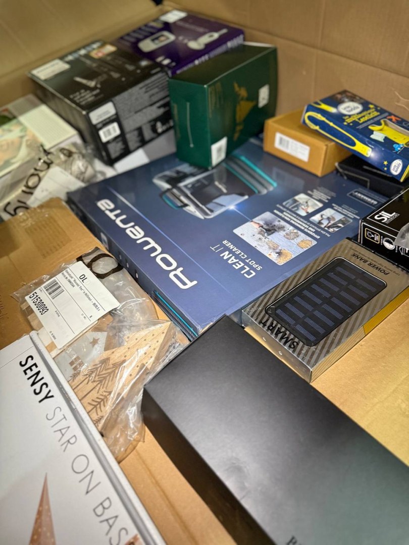 353 € – Palette MIX avec produits techniques, ménagers et pour enfants, retours clients...