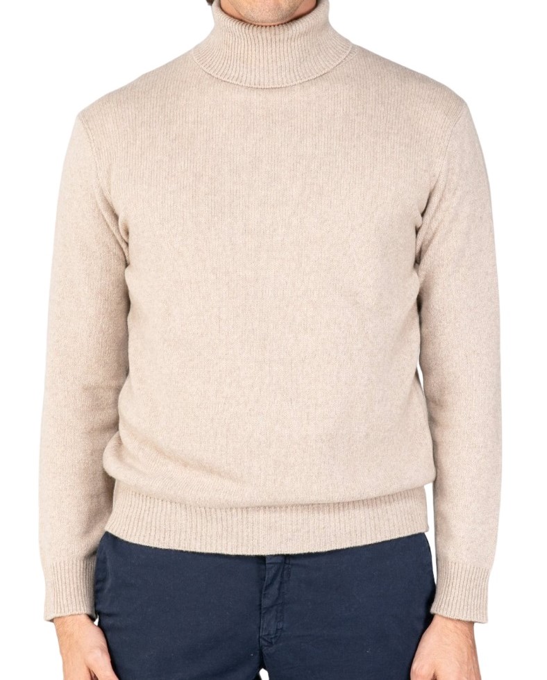 Pull élégant à col roulé pour homme en pur cachemire entièrement produit en Italie.