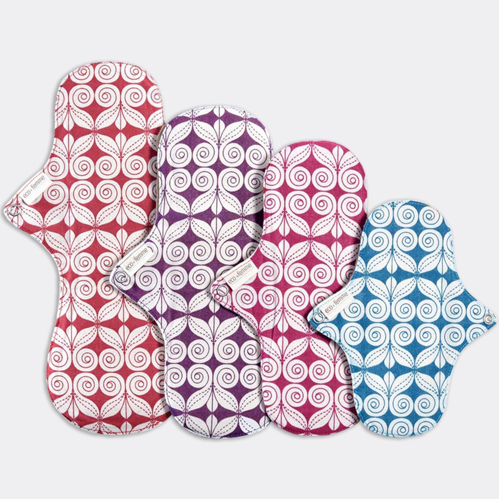 Nous liquidons un stock neuf et emballé de serviettes hygiéniques lavables de la marque Eco Femme, une marque éthique et engagée pour la santé menstruelle durable.