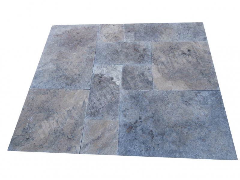 Travertin Silver Big Opus Romain Dimension : 30x30 – 30x60 – 60x60 – 60x90 cm Épaisseur : 2 cm Finition : Antique & Vieilli Qualité : 1'er Choix