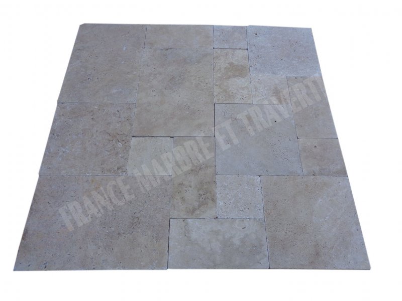 Travertin Beige Clair Big Opus Romain Dimension : 30x30 – 30x60 – 60x60 – 60x90 cm Épaisseur : 3 cm Finition : Antique & Vieilli Qualité : 1'er Choix