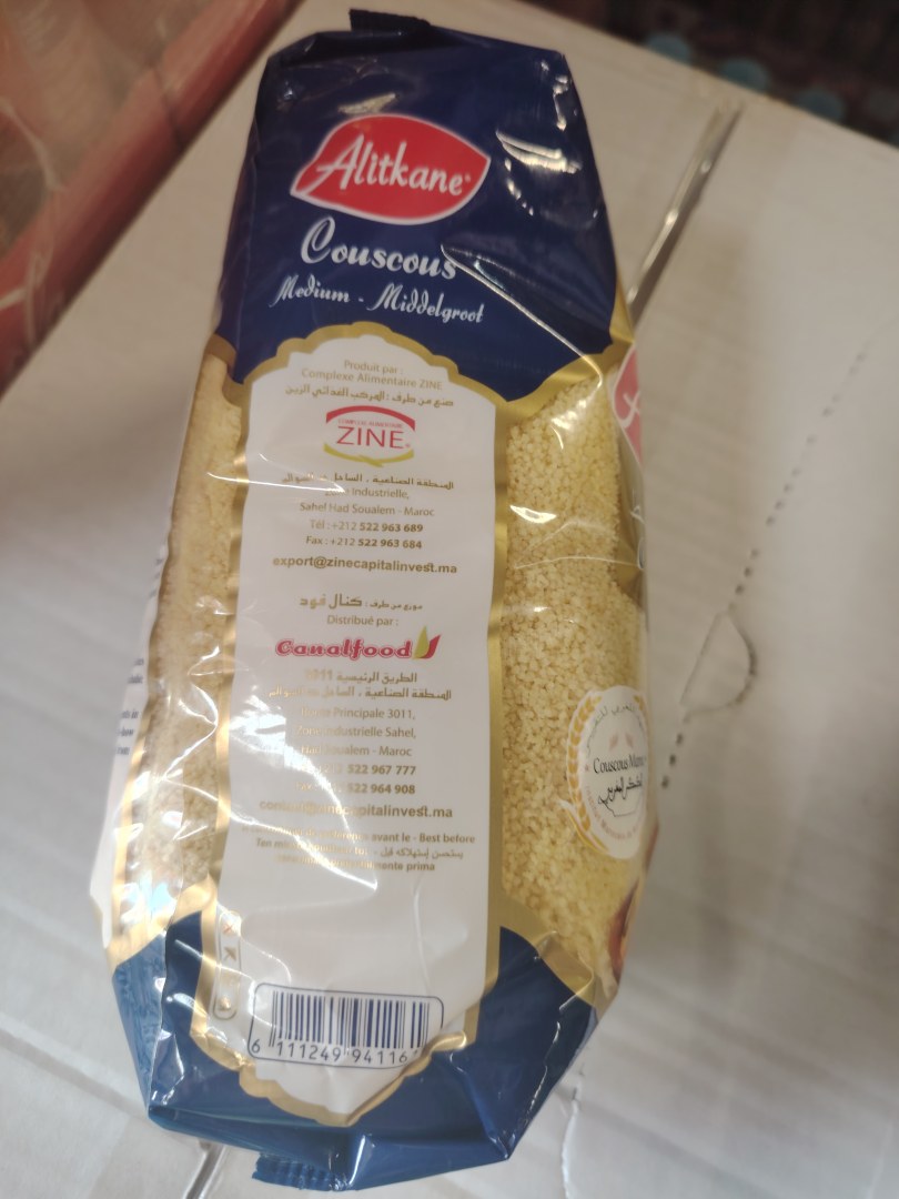 Description du Produit : Nous proposons un lot de couscous Alitkane MOYEN en paquets de 1 kg, conditionnés en cartons de 12 pièces. Idéal pour la vente en gros, les supermarchés, les restaurateurs ou les associations.