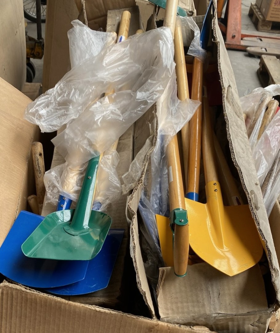 - 110 PELLES ET RATEAUX MÉTAL ET MANCHE BOIS VERNIS