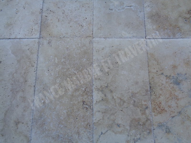 Travertin Beige Nuance 20,3x40,6 cm Épaisseur : 1,2 cm Finition : Brossé & Patiné Qualité : 1'er Choix