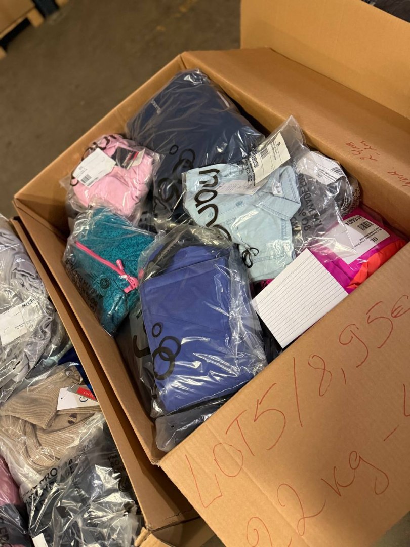 Large sélection de vêtements d'hiver disponibles : vestes, manteaux, pulls et tricots doublés, jeans, pantalons, vestes, robes, jupes, shorts, t-shirts, chemises, blouses, vêtements de sport, maillots de bain, sous-vêtements.