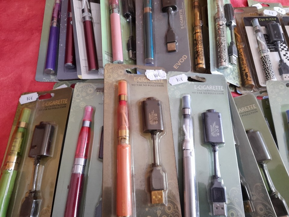 Lot de 49 cigarettes électroniques avec chargeur,batterie de 650/900/1100 m Ah ,différents coloris.