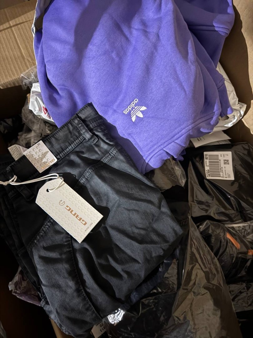 417 € – Lot de marques hommes & femmes, 72 pièces, retours catégories A–C, grandes marq...