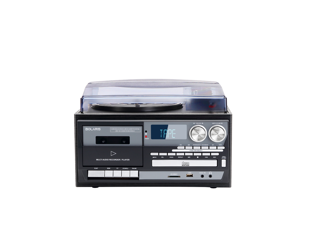 Platine Vinyle Bluetooth 5.0 - Tourne-Disque Multifonctions 10 W RMS, CD, Cassette, FM, Enregistrement USB/SD