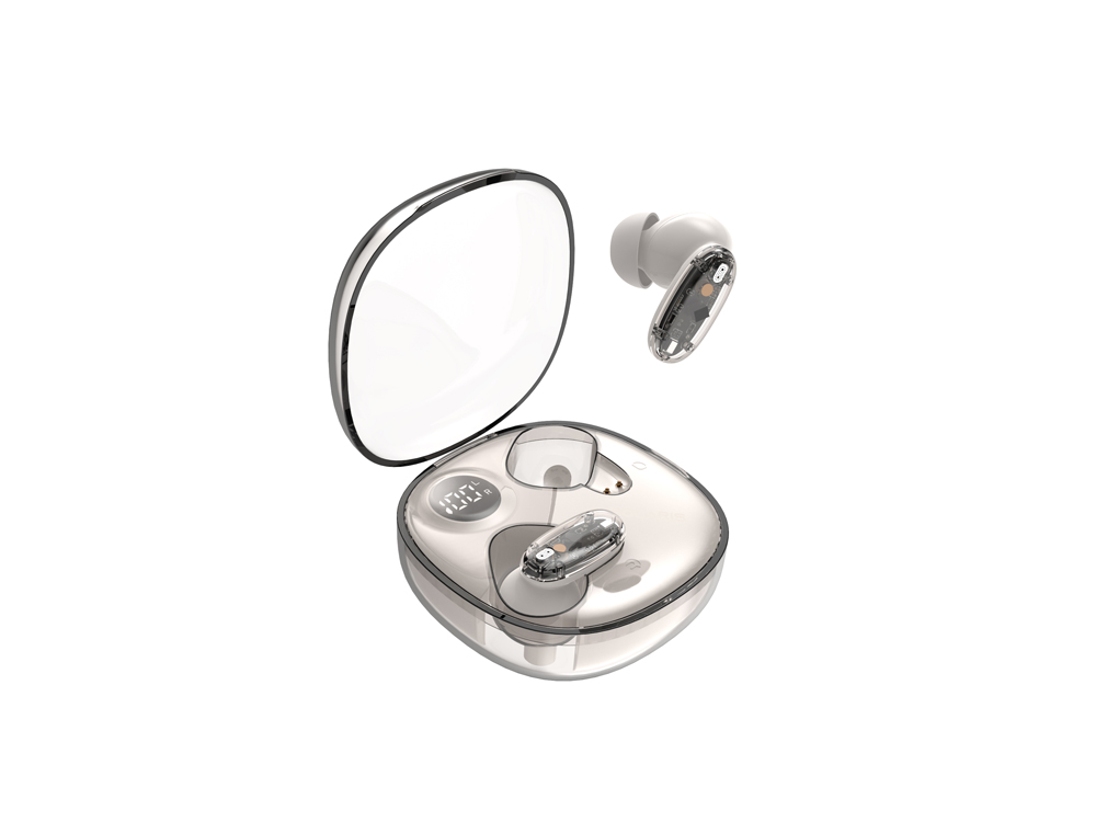 Écouteurs Sans Fil Bluetooth TWS - Autonomie 13 h, Écran LCD et Commandes Tactiles - Translucide